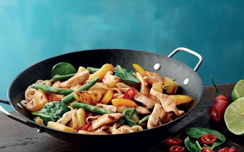 Aromatický kurací Wok so šťavnatým kuracím filé, čerstvou zeleninou (brokolica, mrkva, paprika, cibuľa) a tradičnou sójovou omáčkou. Rýchle a zdravé