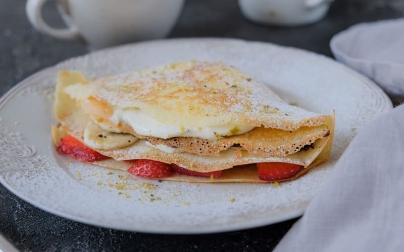 Jemné palacinky s rôznymi sladkými náplňami: tvaroh s hrozienkami, jablká so škoricou, čerešne. Podávané s kyslou smotanou alebo vaším obľúbeným