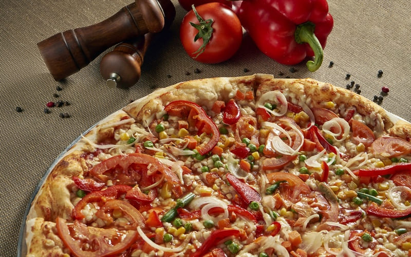 Objavte pizzu ‚Zeleninová fantázia‘ – symfóniu čerstvej zeleniny na chrumkavej kôrke. Brokolica, paradajky, paprika, huby, olivy a mozzarella na paradajkovej